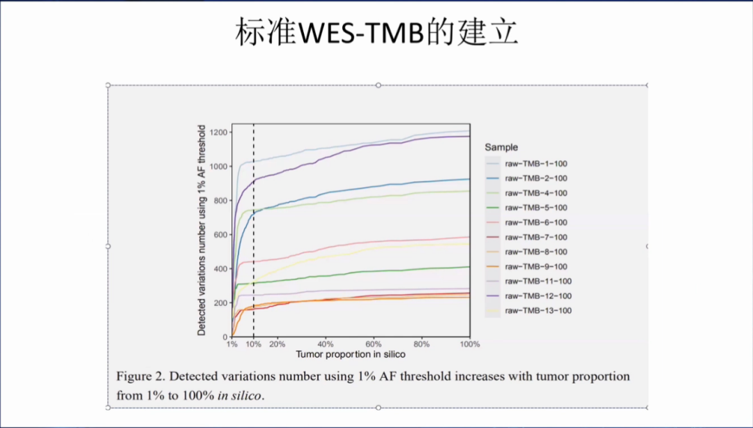 考慮突變頻率AF的情況,1% AF的情況下,腫瘤細胞的含量越高,TMB的準確性越高。
